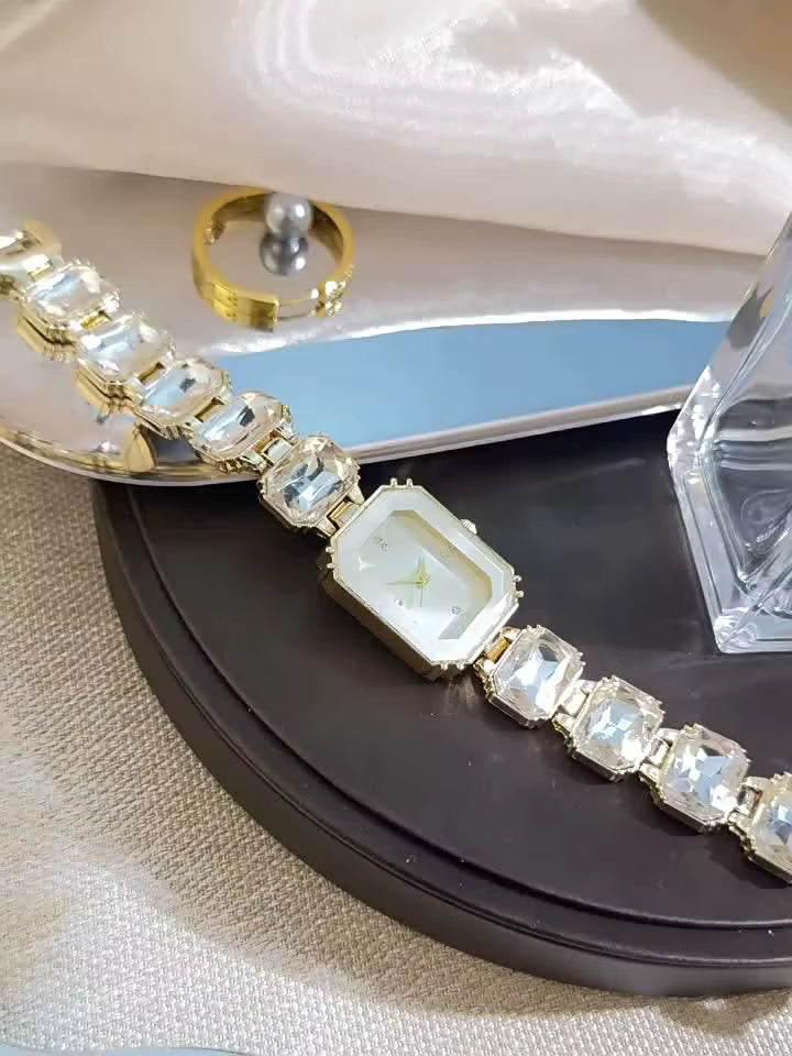 Shein 1pc Women's Simple Square Dial Crystal Quartz Watch