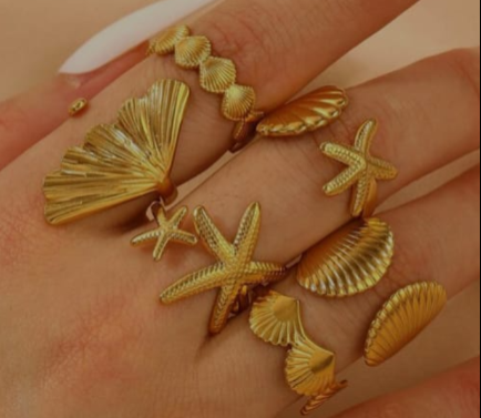 Shein 6-piece/set stainless steel nautical chain rings with star motifs